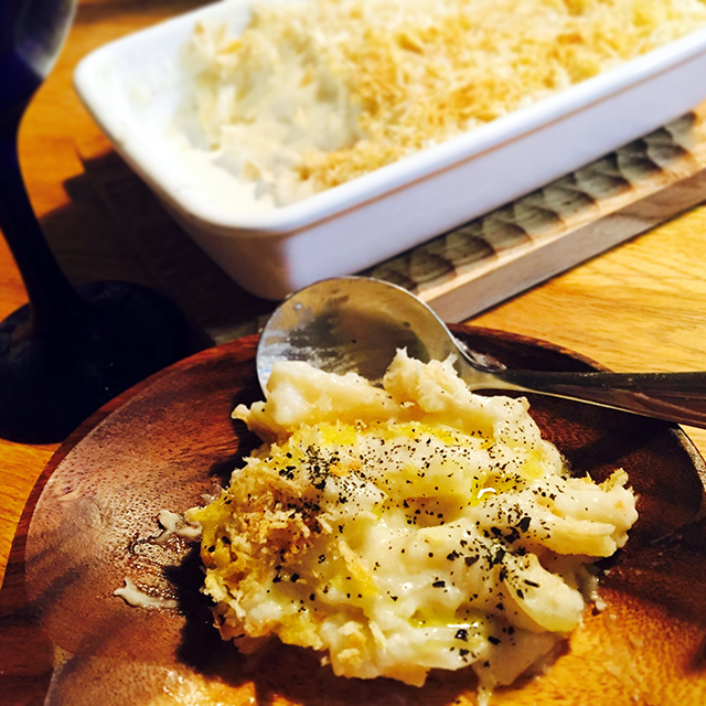 こちらはレシピを参考に作った【酒粕ホワイトソースを使って】『酒粕クリームのほくほくマカロニグラタン』。
