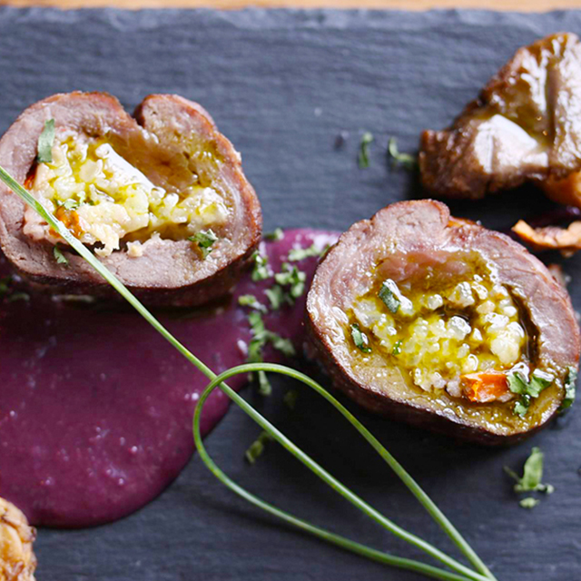 今回は、栄養豊富な鮒鮓の「飯(いい)※鮒と一緒に発酵させた米」を使ったリゾットを、これまた栄養価の高い蝦夷鹿肉で巻いた、豪華なレシピをご紹介します。