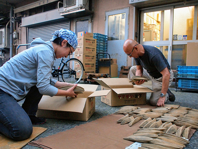 かつお節問屋タイコウの代表で、目利きとして35年活動する稲葉泰三(いなば たいぞう)さんと、目利きとして見習中の大塚 麻衣子(おおつか まいこ)さんに、かつお節について教えていただきました。